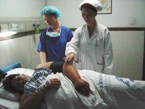 在醫(yī)院,比丈夫朱德全更緊張的是醫(yī)護(hù)人員。要扶李女士上下床,必須出動(dòng)5個(gè)護(hù)士,用儀器檢查時(shí)需要她經(jīng)常翻身,醫(yī)生護(hù)士經(jīng)常累得大汗淋漓。張建華教授說(shuō),為李女士進(jìn)行剖宮產(chǎn)手術(shù)的時(shí)候,她的助手達(dá)到6個(gè)人,比平時(shí)多了一倍。