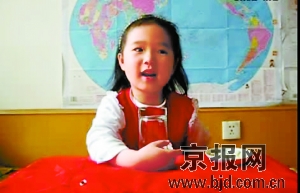 只要在百度上輸入“劉謙魔術揭秘”等關鍵詞,就能看見很多網友自己上傳的“魔術表演”。最近在網絡上廣為流傳的是一個“開心果穿透玻璃杯”魔術,僅在新浪網的播放次數就達到了914239次。表演者是一個穿著紅背心、圓圓臉的可愛小女孩,她就是許佳琳。她坐在一張桌子前面,桌上一個透明玻璃杯倒置,杯底上放著一顆開心果。她用稚嫩的童聲一字一句地說:“現在是見證奇跡的時刻!北咨系拈_心果迅速消失了,而在桌面上出現了一顆開心果。她得意地看著鏡頭詢問:“我變得好不好?能不能吃顆開心果?”
