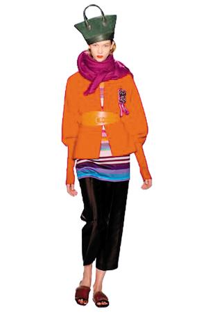 下一季風(fēng)行的包包既不是雙手緊握的傳統(tǒng)式手提包,也不是流浪漢行囊包,更不是風(fēng)行一時(shí)的超大尺寸手提包,而是一頂引人注目的帽子。這頂出自艾薩克·麥茲拉西(Isaac Mizrahi)的有趣帽子,讓觀(guān)眾眼前一亮。