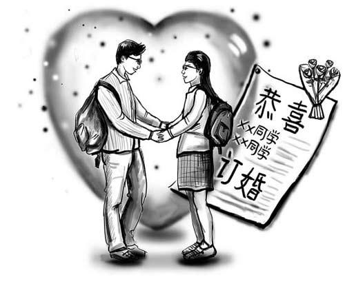 可當(dāng)事人的特殊身份,卻讓記者幾度懷疑這是虛假消息——訂婚的正是小記者的同學(xué),杭州某中學(xué)高三兩位剛剛參加完高考的學(xué)生,F(xiàn)在大學(xué)生結(jié)婚也少有人能接受,乍聽說這則中學(xué)校園里傳出的雷人婚訊,記者半晌沒回過神來。