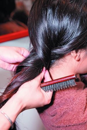 Step2由發(fā)束中間夾著,直接向發(fā)尾卷過去,方向是向外飛,不要向內(nèi)收。
