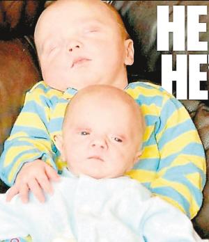 據(jù)英國(guó)《每日郵報(bào)》3日?qǐng)?bào)道,英國(guó)阿伯丁郡班夫市3個(gè)月大嬰兒艾爾菲·里德和奧利·里德是一對(duì)雙胞胎兄弟,然而令人驚訝的是,雖然他們的外貌長(zhǎng)得幾乎一模一樣,但體重卻相差了整整一倍,奧利的體重只有1.85公斤,但艾爾菲的體重卻有3.9公斤,身材瘦小的奧利看起來(lái)就好像是自己兄弟的“縮微版”。
