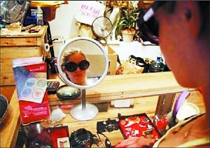 紐約的二手商店,一位女士正在試戴太陽眼鏡。為省錢,人們越來越樂意購買二手商品。