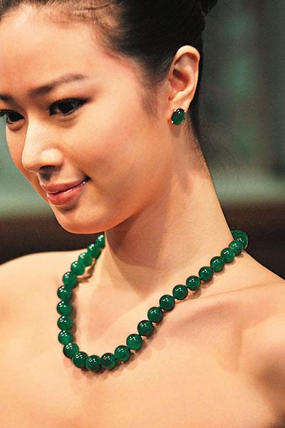 據(jù)香港文匯報報道,香港蘇富比下月7日舉行“瑰麗珠寶及翡翠首飾2010年春季拍賣會”,將呈獻(xiàn)320件閃爍絢麗的珠寶首飾,拍賣總估值逾3.69億港元。在蕓蕓珠寶中,最受注目非全長約530毫米、鑲嵌卡地亞鉑金鉆石扣飾的翡翠玉珠頸鏈莫屬。它由35顆直徑介乎12.55至15.04毫米的翡翠玉珠串連而成,顆顆頂級翡翠水份豐盈,溫潤亮澤,估價高達(dá)3,800萬至5,000萬港元,是全場估價最高的珍品。