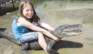 薩曼莎從小就在鱷魚(yú)群中長(zhǎng)大,從6歲起,她就從自己的父親杰爾、母親艾琳那兒學(xué)會(huì)了如何和鱷魚(yú)摔跤、并將它們乖乖制服的藝術(shù)!薩曼莎接受記者采訪時(shí)說(shuō):“我從6歲開(kāi)始就和鱷魚(yú)們摔跤了,我的父母教會(huì)了我如何將鱷魚(yú)制服的本領(lǐng)。我的父親在5歲時(shí)曾經(jīng)被鱷魚(yú)咬過(guò)一次,從那以后,他就學(xué)會(huì)了如何搏斗并制服兇猛的鱷魚(yú)。當(dāng)我一開(kāi)始和鱷魚(yú)摔跤時(shí),我真有點(diǎn)兒害怕,不過(guò)我的父親一直在我身邊,他總是知道該如何對(duì)付它們。如果我面臨危險(xiǎn),他就會(huì)過(guò)來(lái)幫助我!