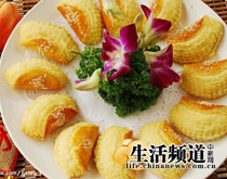 花開時節(jié):精選菊花油爆而成。沾上花蜜,純純的花朵入口美妙。
