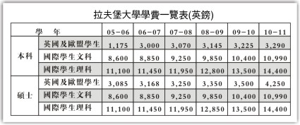 諾丁漢大學(xué)位于英國中部。由于近幾年與中國多所院校合作辦學(xué),中國留學(xué)生成批涌進(jìn)這所大學(xué);同時(shí)該校還在浙江寧波設(shè)立分校,有條件的大三學(xué)生會(huì)到英國讀書一年。記者聯(lián)系到該校的碩士研究生陳兵同學(xué),他詳細(xì)列出該校歷年來的收費(fèi)標(biāo)準(zhǔn)。今年的學(xué)費(fèi)比去年略有上漲,但增長率與往年持平。他覺得這個(gè)上調(diào)的價(jià)格是合理的,中國來的同學(xué)都能接受。