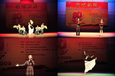 隨后,同學們圍繞“歌唱祖國,用歌聲為祖國生日獻禮”的主題,表演了豐富多彩的文藝節(jié)目。開場團體舞蹈《春天的故事》造型優(yōu)美,歌曲《我和我的祖國》傾注了年輕海外學子對祖國母親的款款深情,歌聲嘹亮,獨舞《征途》英姿颯爽,獨唱《再見瀏陽河》優(yōu)美動聽。此外,二胡演奏、詩歌朗誦、鋼琴獨奏、小提琴演奏和獨具特色的中國旗袍時裝秀等表演贏得了全場觀眾的喝彩。雖然這次參加演出的絕大多數是80后、90后的年輕學生,但每一個節(jié)目都經過了精心準備和反復排練,每一個表演都展現了同學們對祖國60華誕的喜悅和自豪。形式多樣、異彩紛呈的演出博得滿場觀眾一陣又一陣熱烈的掌聲和歡呼聲。
