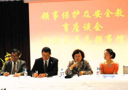 中新網(wǎng)11月30日電 據(jù)新西蘭中華新聞通訊社消息,25日下午,中國駐奧克蘭總領(lǐng)館在簽證大廳舉辦了一場華人及留學(xué)生領(lǐng)事保護安全座談會。廖菊華總領(lǐng)事主持會議,工黨華人國會議員霍建強、國家黨黃徐毓芳部長助理鄭楠,以及特別邀請的三位華裔新西蘭警官出席了座談會,他們先后就如何強化華人在新西蘭的法律及自我保護意識進行講座。
