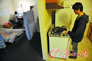 與李俊強(qiáng)同住的小伙子叫郭郭。他家境一般,選了這個套房的客廳作為暫居之地。“我沒有想過留在這里,也許畢業(yè)了就回國吧,工程藝術(shù)這個專業(yè)在國內(nèi)很容易找到一份好工作的!惫巧綎|人,女朋友還在家鄉(xiāng),每天他都要通過網(wǎng)絡(luò)和女友通話,而剩下的時間基本用在學(xué)習(xí)上了。