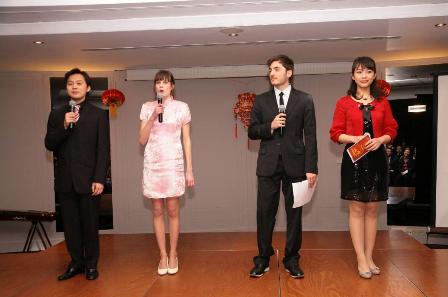 使館教育處王魯新參贊首先給到場(chǎng)的各位嘉賓和所有觀眾拜年并送出虎年的美好祝愿,并回顧了中國在過去一年金融危機(jī)時(shí)期經(jīng)濟(jì)持續(xù)發(fā)展的良好勢(shì)頭和在國際舞臺(tái)上的重要地位,同時(shí)展望了祖國更美好的2010年,即興用英語做了發(fā)言,在熱烈掌聲后開始了文藝演出。