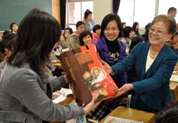 來自中國北京師范大學、即將在人文科學研究院留學的顏淑蘭(24歲)參加贈送儀式后特別感動,滿臉喜悅地表示:“一個人到異國他鄉(xiāng)求學,心里沒有底,但今天能參加這個活動,看到日本的人們對我們?nèi)绱岁P(guān)心,自己受到了莫大的鼓勵!(米灝)
