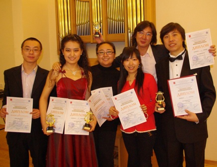 在這次音樂大賽中中國選手成績喜人,前來參賽的八位選手均獲得證書和獎杯,他們有的是在圣彼得堡留學(xué)的學(xué)生,有的是國內(nèi)大學(xué)的學(xué)生。分別參加了鋼琴獨(dú)奏組、管弦樂器組、獨(dú)唱組、合唱指揮組的比賽并都取得優(yōu)異成績。獨(dú)唱組高翔(赫爾岑師范大學(xué)的留學(xué)生)獲得一等獎;合唱指揮組陳西澤(赫爾岑師范大學(xué)的留學(xué)生)獲得二等獎,一等獎空缺;鋼琴獨(dú)奏組賈超(赫爾岑師范大學(xué)的留學(xué)生)獲得二等獎、張鵬(沈陽音樂學(xué)院在校生)獲得二等獎、張晶瑩(赫爾岑師范大學(xué)的留學(xué)生)獲得優(yōu)秀獎、齊麗娜(赫爾岑師范大學(xué)的留學(xué)生)獲得優(yōu)秀獎、劉博(赫爾岑師范大學(xué)的留學(xué)生)獲得優(yōu)秀獎;管弦樂器組米磊(赫爾岑師范大學(xué)的留學(xué)生)獲得優(yōu)秀獎。赫爾岑師范大學(xué)的高翔還獲得了由美國紐約長島音樂學(xué)院特別頒發(fā)的創(chuàng)意亮相獎。(佳佳)