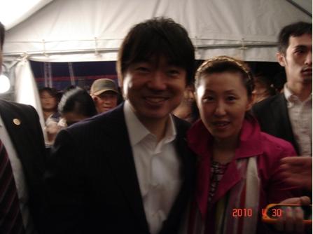 在大阪日本橋開辦四川料理店鳳家的中國女留學(xué)生汪哲有幸接到了邀請函,不但進(jìn)入了會(huì)場,還坐在橋下知事很近的座位上,演出結(jié)束后,汪哲突然產(chǎn)生了一股勇氣,來到了橋下知事的身邊,她大膽地拉住了橋下知事的手,向橋下知事介紹了自己在大阪宣傳上海世博會(huì)的努力,橋下知事也被上海世博會(huì)的慶祝氣氛深深地感染了,顯得很有興趣地聽完了汪哲的自我介紹;接著汪哲乘勝追擊邀請橋下知事與她合影留念,并留下了珍貴的紀(jì)念照片。