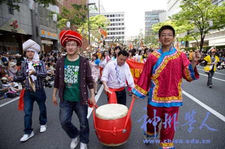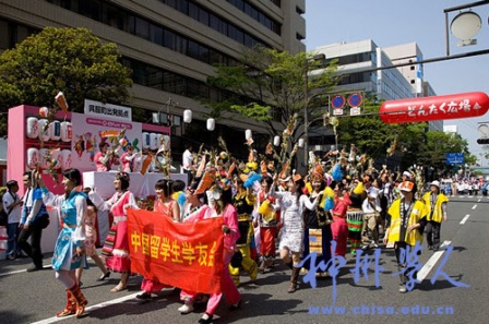 作為最能代表福岡博多的節(jié)日之一,也是西日本最有名的全民歡樂節(jié)之一,“博多打鼓節(jié)”起于平安時代,由一種稱為“松囃子”的民間藝術(shù)演變而來,最早的時候,它是向當(dāng)?shù)仡I(lǐng)主祝賀新年的儀式,如今已經(jīng)演變成為福岡地區(qū)傳統(tǒng)的節(jié)日,市民組織各式各樣的慶;顒。2010年度的博多打鼓節(jié),中國留學(xué)生報名踴躍,積極參與,“中國留學(xué)生方隊(duì)”列于壓軸位置,在各個留學(xué)生隊(duì)伍中,“中國留學(xué)生方隊(duì)”參加人數(shù)最多,展示了中國傳統(tǒng)的少數(shù)民族服飾服飾和舞獅表演,亮點(diǎn)頻現(xiàn)。