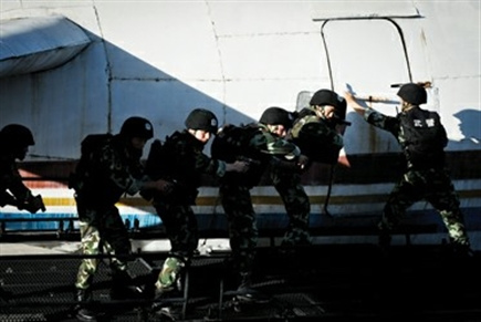 這是武警上海總隊(duì)前天組織的一場(chǎng)反劫機(jī)模擬演練。據(jù)了解,組建于2002年7月的武警上海總隊(duì)九支隊(duì)反劫機(jī)中隊(duì),是國內(nèi)第一支武警反劫機(jī)中隊(duì),主要擔(dān)負(fù)江浙滬皖三省一市20個(gè)機(jī)場(chǎng)的地面反劫機(jī)任務(wù)以及處置本市其他暴力、恐怖事件。近年來,該總隊(duì)積極探索現(xiàn)代條件下駐城市部隊(duì)反恐斗爭(zhēng)的特點(diǎn)、規(guī)律,研究相應(yīng)戰(zhàn)法和戰(zhàn)術(shù)手段,通過設(shè)置各種復(fù)雜情況下反恐反劫持戰(zhàn)斗預(yù)案,開展近似實(shí)戰(zhàn)的模擬演練,不斷磨礪尖刀部隊(duì)的鋒芒,提高部隊(duì)的戰(zhàn)斗能力。組建10年來,反劫機(jī)中隊(duì)先后27次參加公安、武警組織的反劫機(jī)和反恐怖事件演練,全部成功處置,56人立功受獎(jiǎng),被譽(yù)為上海武警反恐處突的“拳頭”和“尖刀”。(章樂平 王小磊 劉天 朱斌)