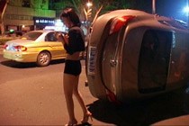 高跟女子翻車(chē)毫發(fā)無(wú)損