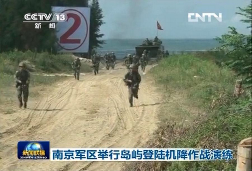 演習(xí)中士兵隨兩棲戰(zhàn)車(chē)部隊(duì)登陸