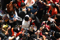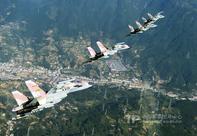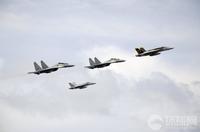 馬來西亞海軍的蘇-30戰(zhàn)機(jī)與美國(guó)海軍的F/A-18戰(zhàn)斗機(jī)組成編隊(duì)從華盛頓號(hào)航母上空飛過