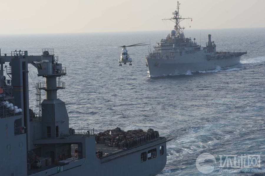 演習(xí)中美軍補給艦演練海上垂直補給