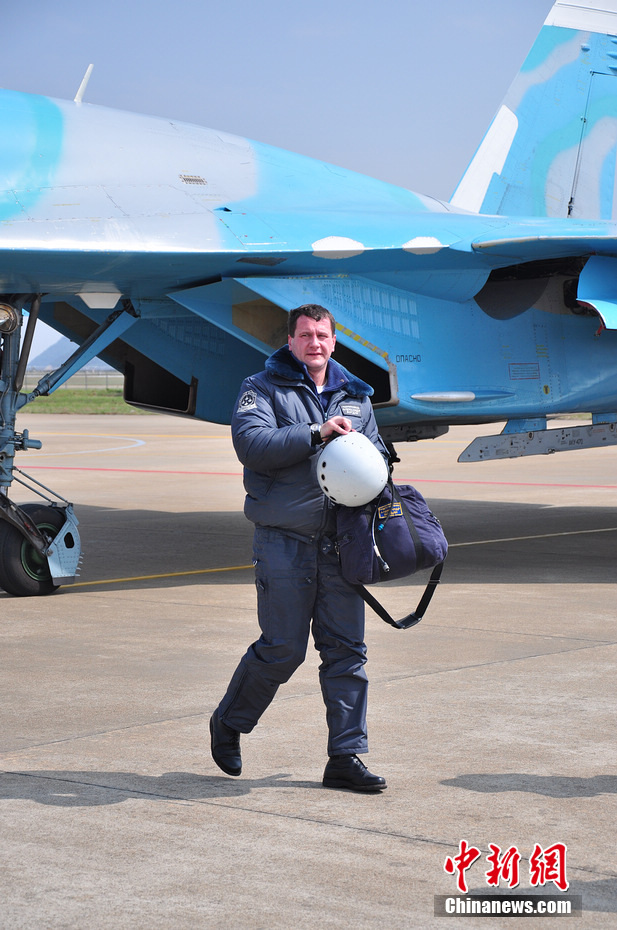 剛從蘇27戰(zhàn)機下來的飛行員穿得很厚。陳海峰 攝