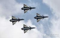第9屆中國航空航天博覽會開幕在即。中國人民解放軍空軍八一飛行表演隊已到達珠海機場。11月10日,珠海機場多云,八一飛行表演隊的飛行健兒進行了“熱身訓(xùn)練”。記者在現(xiàn)場記錄了他們駕駛殲10戰(zhàn)機在云中穿梭的情景。親眼見證 “三機箭隊起飛”、“4機菱形隊斤頭”、“5、6號機繞軸滾轉(zhuǎn)”、“4機菱形放起落架斜盤旋”、“4機疊羅漢”等新增的高難度動作的風(fēng)采。(來源:中國軍網(wǎng))