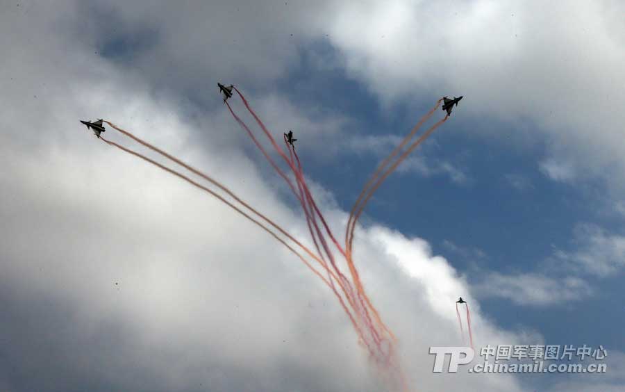 5機(jī)拉煙向上開(kāi)花。解放軍報(bào)記者 喬天富 攝