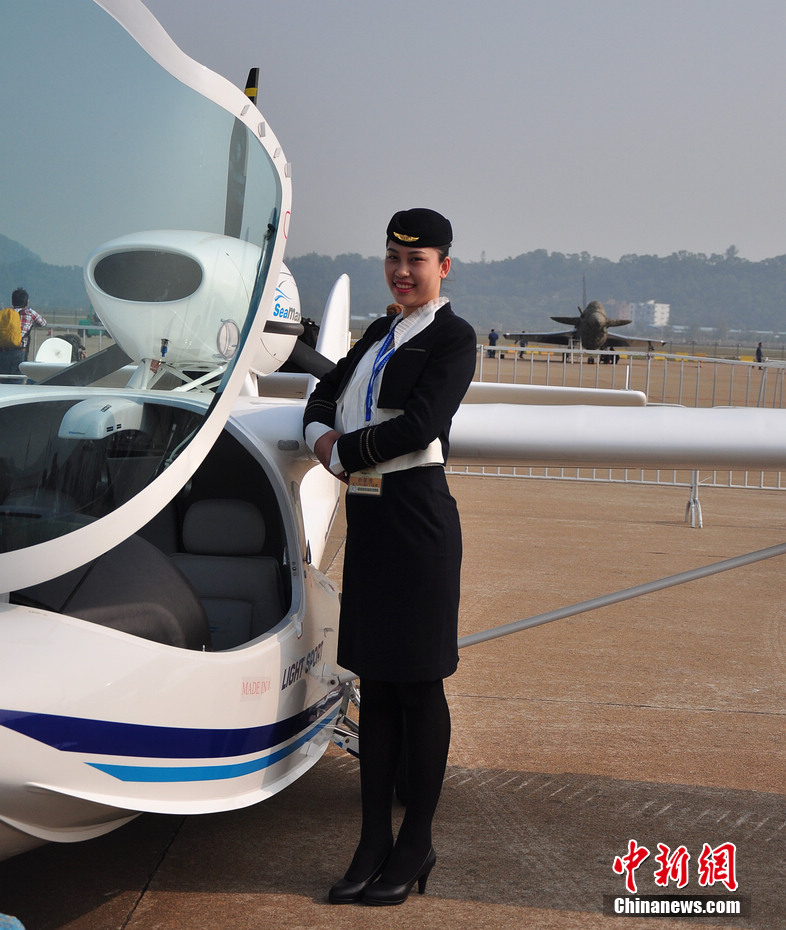 每一屆珠海航展都會有許多佳麗現(xiàn)身,而這次航展上的直升機模特更是讓觀眾大飽眼福。陳海峰 攝