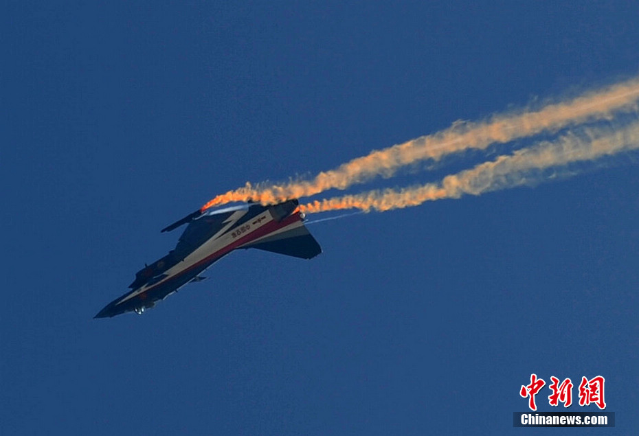 中新網(wǎng)珠海11月14日電(陳海峰) 第九屆珠海航展于昨日上午開幕。隨后,中國空軍八一飛行表演隊(duì)進(jìn)行飛行表演,上演了“向上開花”、“雙機(jī)對(duì)沖”、“小半徑轉(zhuǎn)圈”等精彩動(dòng)作。記者曾多次觀看過八一飛行表演隊(duì)的表演,而這次是最精彩的一次!