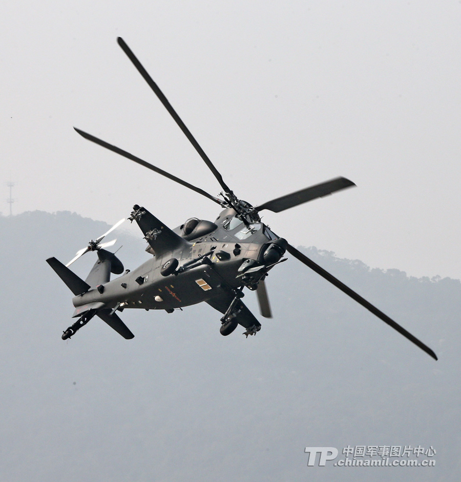 11月13日,我國自主研制生產的武直-10武裝直升機亮相在珠海舉行的第九屆中國國際航空航天博覽會,在飛行表演中展示了這款直升機的優(yōu)良性能。圖為武直-10側旋。記者喬天富 攝