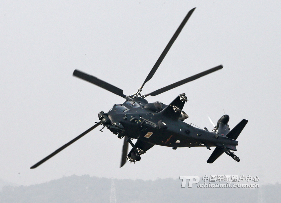 11月13日,我國(guó)自主研制生產(chǎn)的武直-10武裝直升機(jī)亮相在珠海舉行的第九屆中國(guó)國(guó)際航空航天博覽會(huì),飛行表演展示了這款直升機(jī)的優(yōu)良性能。圖為武直-10垂直躍升。記者喬天富攝