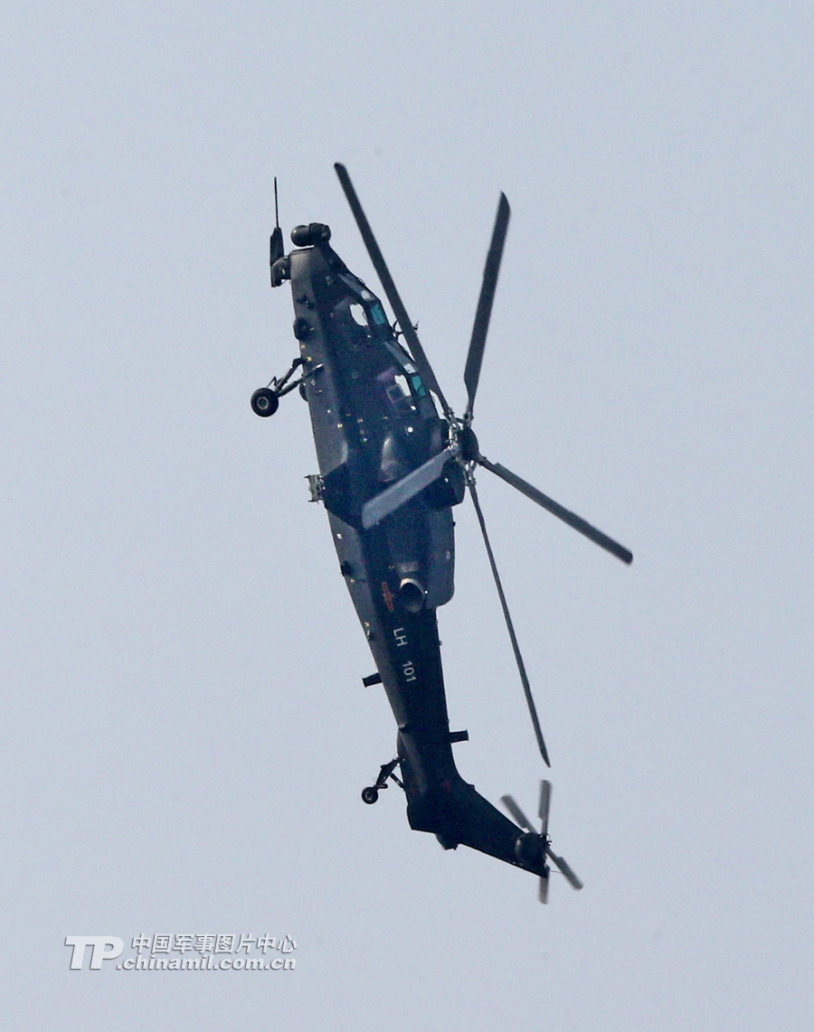 11月13日,我國自主研制生產(chǎn)的武直-10武裝直升機(jī)亮相在珠海舉行的第九屆中國國際航空航天博覽會,飛行表演展示了這款直升機(jī)的優(yōu)良性能。圖為武直-10垂直躍升。記者喬天富攝