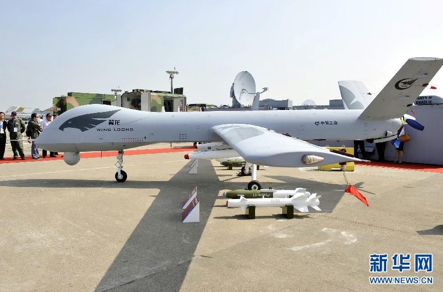 這是11月13日拍攝的“翼龍”無人機(jī)系統(tǒng)實(shí)物側(cè)面。新華社記者 梁旭 攝