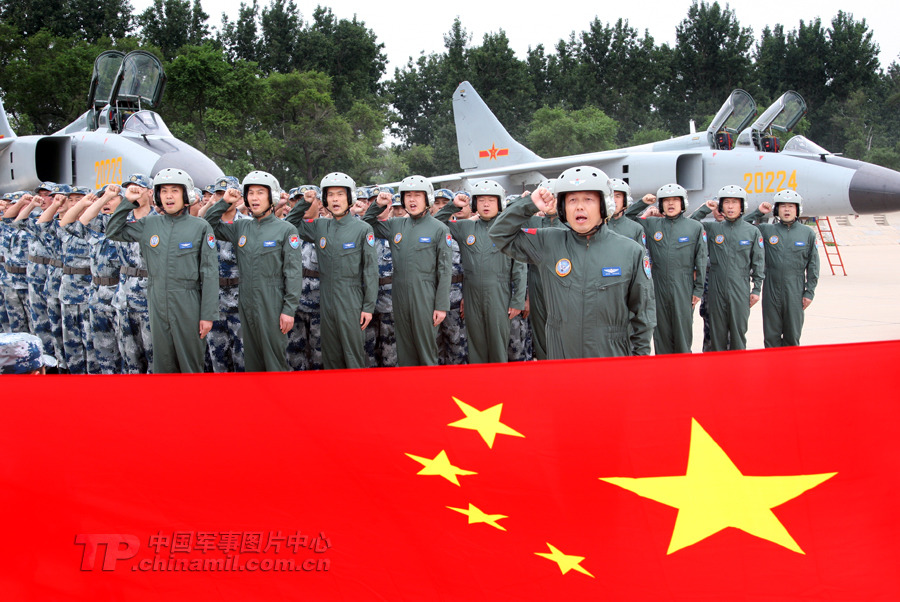 7月27日,參加中俄聯(lián)演的空軍戰(zhàn)斗群官兵出征前在國旗前集體宣誓,立志圓滿完成聯(lián)演任務(wù),為祖國爭(zhēng)光。 曹占禮 攝(來源:中國軍網(wǎng))