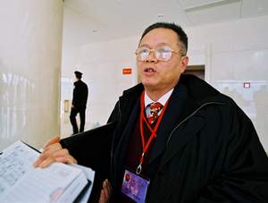 今天上午,浙江省人大十屆一次會(huì)議在此間隆重召開。會(huì)場(chǎng)上,一張?zhí)厥獾拿擞浾叩难酃。大紅色的名片上正面寫著“熱烈祝賀浙江省人大十屆一次會(huì)議隆重召開”、“杭州市浙江省新人民大會(huì)堂旁聽代表崔鹽生敬賀”。幾經(jīng)周折,記者終于在會(huì)場(chǎng)上找到了這這張名片的主人——浙江有史以來第一個(gè)以自薦身份旁聽省人大會(huì)議的“準(zhǔn)人大代表”。