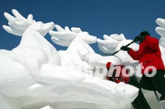 哈爾濱雪雕博覽會一月正在松花江畔舉行,園藝師制作長達(dá)數(shù)十米的大型雪雕森林之歌,好似藍(lán)天下的神曲。作者:毛建軍
