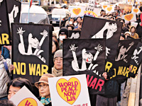 日本星期六掀起了全球周末反戰(zhàn)浪潮的第一波。五千多人星期六在首都東京集會﹐人數(shù)在日本全國當(dāng)天舉行的十來個抗議集會中最多。