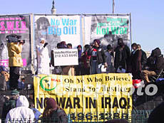數(shù)萬美國人十八日中午聚集華盛頓的國會(huì)山前,舉行聲勢(shì)浩大的反戰(zhàn)示威游行,反對(duì)對(duì)伊拉克動(dòng)武。作者:余東暉