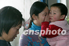 罹難礦工李景玉的女兒與外孫十五日在家中相擁而泣(中新網(wǎng)資料圖片)
