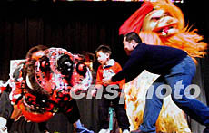 加拿大渥太華的“成功舞獅團”二十五日在首都中文學校表演中國特色的節(jié)目——《舞獅》。圖為一位在國外出生的兒童好奇地走到正在狂舞的“獅子”面前想探個究竟。作者:蒲力