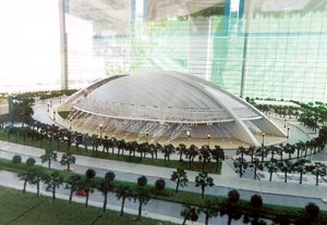 位于路凼塡海區(qū)的“澳門蛋(Macau Dome)”大型多功能體育館,比現(xiàn)正施工的澳凼第三大橋還高,是特區(qū)政府成立以來投資最大的單一工程項目。該項工程早前經(jīng)土地工務(wù)運輸局公開招標(biāo)、評審,并經(jīng)行政長官批示,由新明輝/中國建筑(澳門)聯(lián)營公司承建,工程造價約為6.4億元。