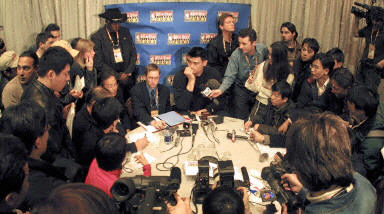 2月7日,NBA全明星賽在亞特蘭大舉行記者招待會(huì)。休斯頓火箭隊(duì)中鋒姚明在記者會(huì)上回答來(lái)自全世界各國(guó)媒體記者的提問(wèn)。2003年NBA全明星比賽,將于2月9日在美國(guó)喬治亞州亞特蘭大市的菲利普斯球場(chǎng)舉行。