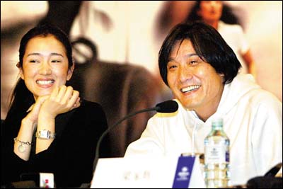 影片中有不小篇幅的情愛戲場面,于是更有人借發(fā)布會“裝傻充愣”硬生生地問鞏俐:“隨著電影審查制度的放寬,你的激情戲尺度是不是也放寬了?”鞏俐聞言先是大笑:“我的激情戲尺度跟著政策放寬?”接著正色道:“每部言愛的電影,角色間多多少少都有一些身體接觸,例如擁抱、接吻。以前的做法很極端,將這些鏡頭都剪掉,其實是不對的。因為這些是人的本性,是美的、自然的,所以拍得健康的鏡頭應該保留。我們這部影片中的激情戲,就拍得很美,沒有一點讓人覺得不干凈!睂O周又接話茬兒:“我們是真誠地在拍三個角色的感情,也是真誠地在拍那些身體接觸的鏡頭。拍激情戲的那一些瞬間,要求演員要忘掉自己,真實地按感覺去走,而不是考慮著審查的問題去拍。當時我們清了場,攝影機里膠片也一直不停地轉,就這么讓兩人死纏在一起?梢哉f,如果要‘下去’,兩人完全可以繼續(xù)‘下去’。最首要的,我們要讓‘情到了’的鏡頭出現(xiàn),相信這個過程下選取的鏡頭才是準確的!