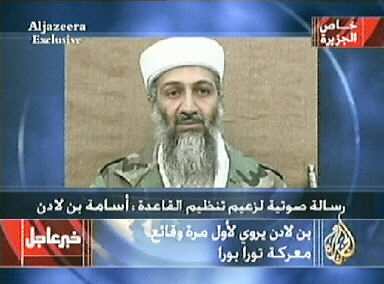 據(jù)報(bào)道,在11日晚間正常播放節(jié)目期間,半島電視臺(tái)的電視屏幕下方打著這樣一個(gè)標(biāo)題:“‘基地’組織領(lǐng)導(dǎo)人奧薩馬·本·拉登號(hào)召所有穆斯林團(tuán)結(jié)起來(lái),共同保衛(wèi)伊拉克人民,半島電視臺(tái)將于稍晚時(shí)候播放一段錄音。”