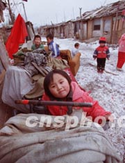 在北京務工的外地菜農(nóng)的孩子二月在寒假快樂地游戲,孩子們即將迎來新學期。作者:滿會喬