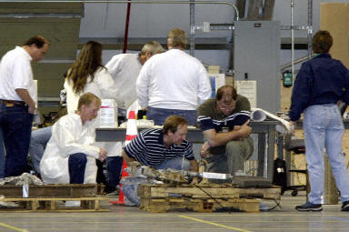 從路易斯安娜和德州經(jīng)過分析對比后的“哥倫比亞”號殘骸被陸續(xù)運抵位于弗羅里達的肯尼迪航天中心,展開更深入的調(diào)查失事原因工作。圖為KSC工作人員接收殘骸物件進行匯總登記。
