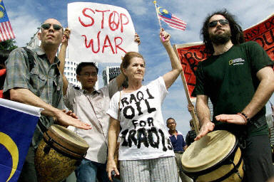 在泰國,5000多名泰國各界民眾在曼谷舉行聲勢(shì)浩大的反戰(zhàn)示威,強(qiáng)烈反對(duì)美國企圖對(duì)伊拉克發(fā)動(dòng)戰(zhàn)爭。