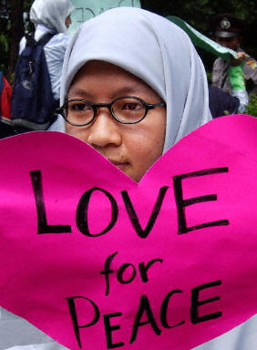 周六上午,來自泰國各地的穆斯林、佛教僧侶和普通民眾,以及泰國上議院議員和高等院校的學(xué)者,在美國駐泰大使館附近的侖披尼公園集會(huì),他們高舉反戰(zhàn)標(biāo)語,舉行反戰(zhàn)演講,穆斯林阿訇帶領(lǐng)信眾誦經(jīng)祈禱和平。一些在泰國的外國人也加入了反戰(zhàn)示威行列。