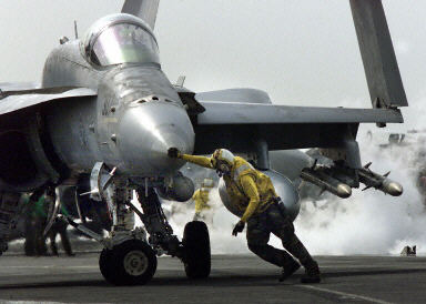 F/A-18“超級黃蜂”(SuperHornet)艦載多用途超音速戰(zhàn)斗機,由美國麥克唐納·道格拉斯公司制造,1995年首次飛機,裝備于“林肯”(USS Abraham Lincoln)號核動力航空母艦。