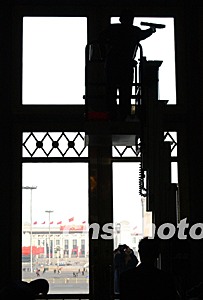第十屆全國人大和政協(xié)盛會即將開幕,工作人員正在清洗北京人民大會堂東大門玻璃,準(zhǔn)備以潔凈亮麗的形象迎接盛會召開。作者:張煒
